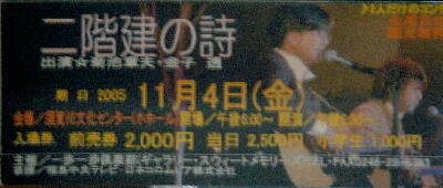 秋のコンサートツアー後半スタート 2005 11/4 PM18:00 開場 PM18:30 開演